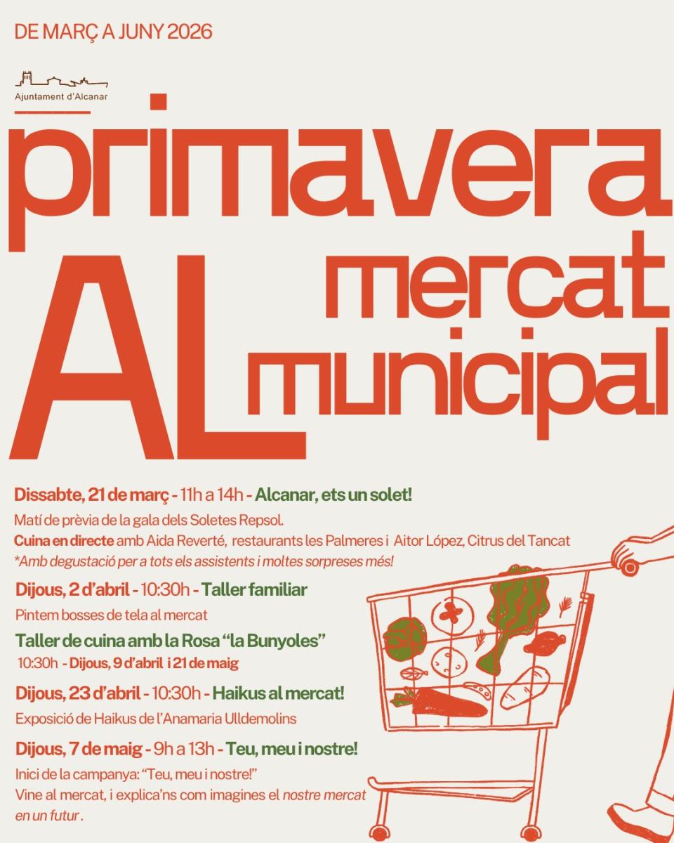 La nova agenda inclou tallers de cuina i sessions de cuina en directe vinculades a la programació de la Gala Repsol dels Solets de Primavera, així com activitats infantils i familiars que busquen apropar el mercat a tothom i fomentar-ne l’ús com a espai quotidià. A més, s’ha previst una jornada participativa per reflexionar i treballar conjuntament en la millora del mercat municipal.