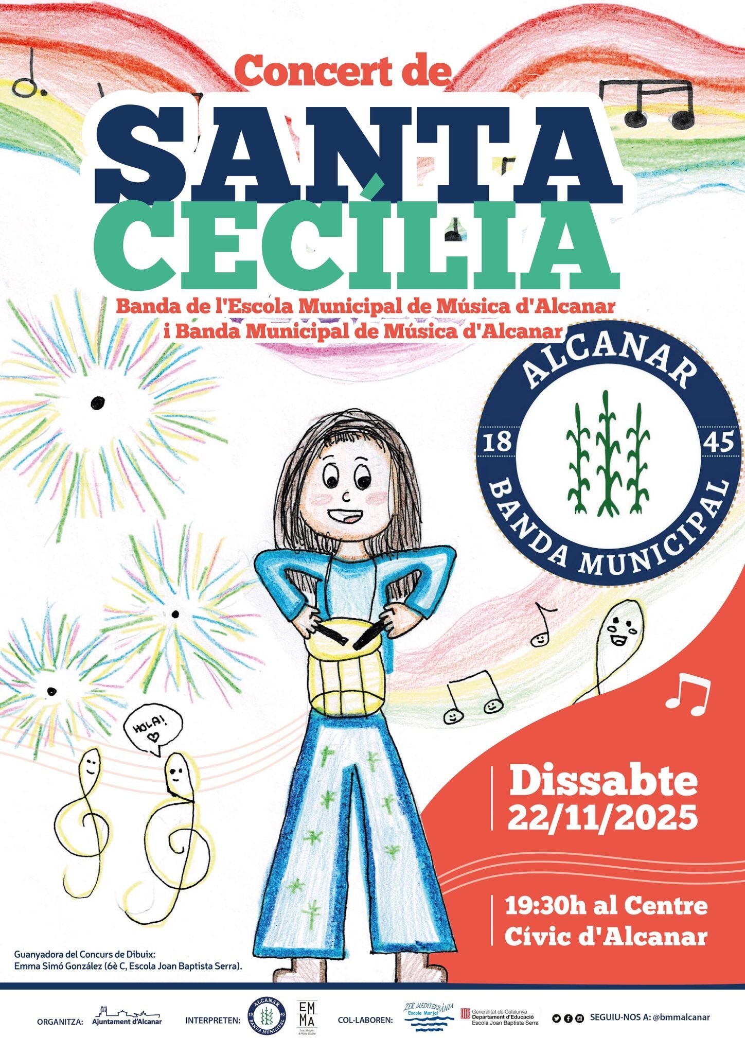 "Quedeu convidats a tots els actes de Santa Cecília 2025 de la Banda Municipal d’Alcanar, i especialment al Concert Santa Cecília que tindrà lloc dissabte 22 de novembre a partir de les 19:30 h al Centre Cívic 1 d’octubre d’Alcanar, amb la Banda de l’Escola Municipal de Música d’Alcanar, l’alumnat cantaire i la Banda Municipal d’Alcanar", animen des de la BMA.