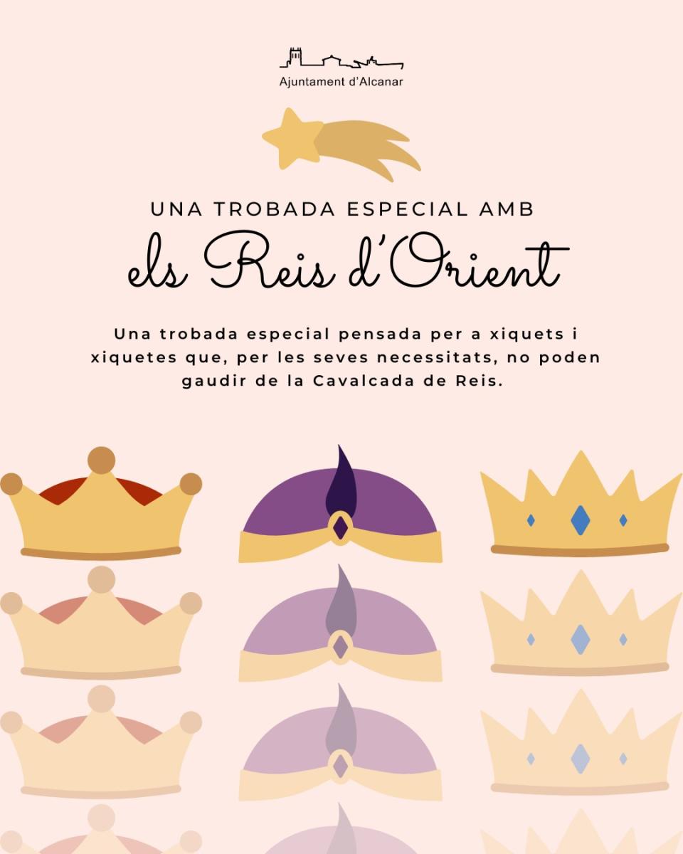 L’Ajuntament d’Alcanar organitza una trobada especial amb els Reis d’Orient adreçada a xiquets i xiquetes que, per les seves necessitats, no poden gaudir de la Cavalcada de Reis en les condicions habituals. L’objectiu és que tots els infants puguin viure la màgia dels Reis d’una manera tranquil·la, respectuosa i adaptada.
