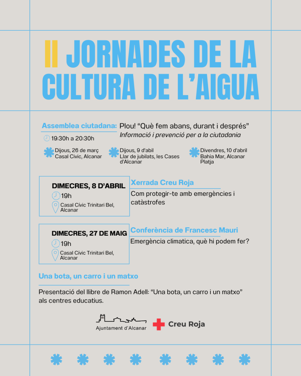 Justament després del Dia Mundial de l'Aigua, celebrat el passat diumenge, l'Ajuntament d'Alcanar ha presentat la segona edició de les Jornades de la Cultura de l'Aigua, una iniciativa que torna aquest 2026 amb una mirada centrada en l'actualitat i els reptes de futur vinculats a l'aigua i el canvi climàtic.